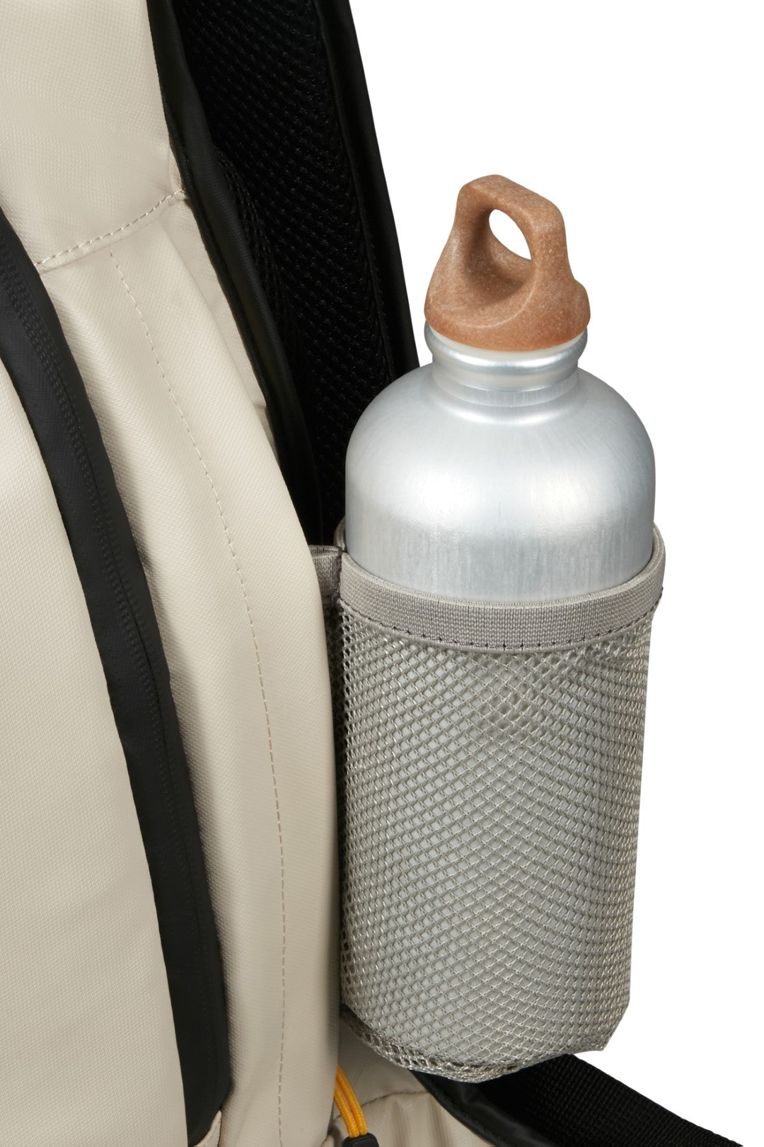- BOTTLE HOLDER Mesh bottle holder integrated in side pocket.