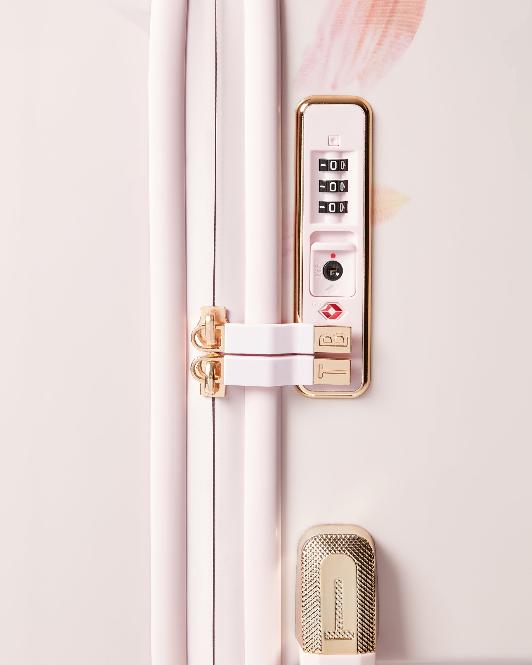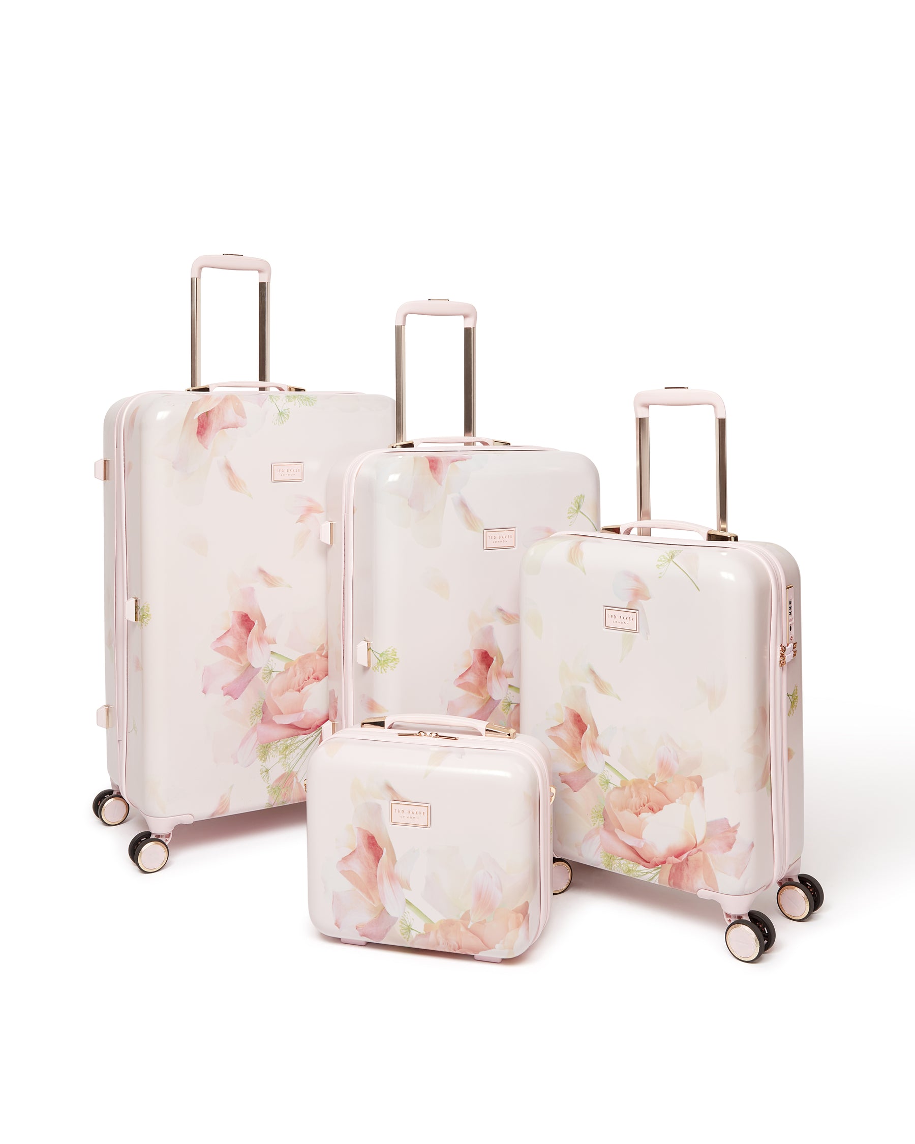 A fresh floral moment designed for the understated statement maker. Magnolia Bloom luggage collection by Ted Baker is fine, feminine, and full of presence. Finished with Ted Baker’s signature gold details and a sculpted, structured form, this 4-piece travel collection includes a Vanity Case, Cabin, Medium, and Large Suitcase.