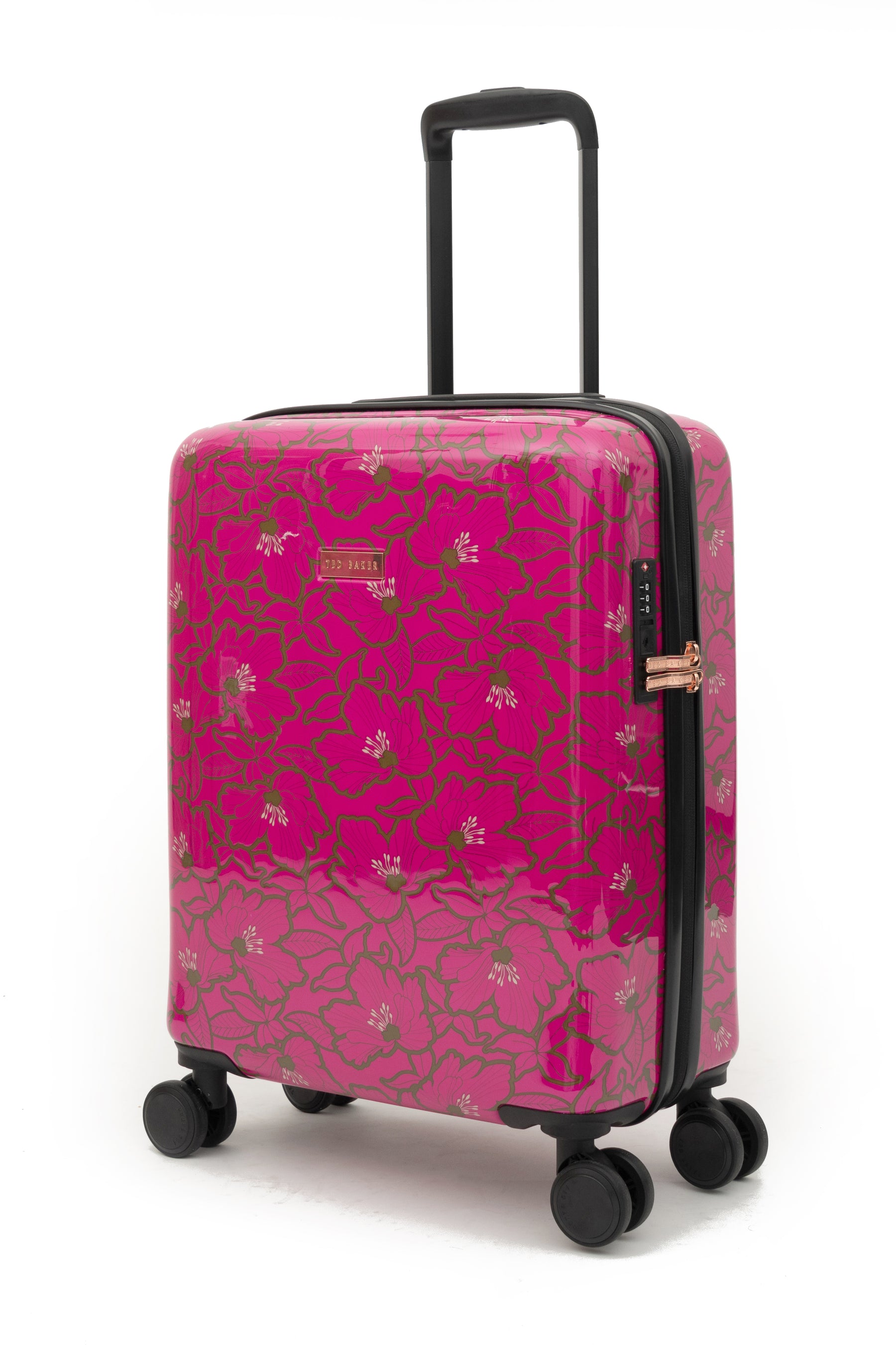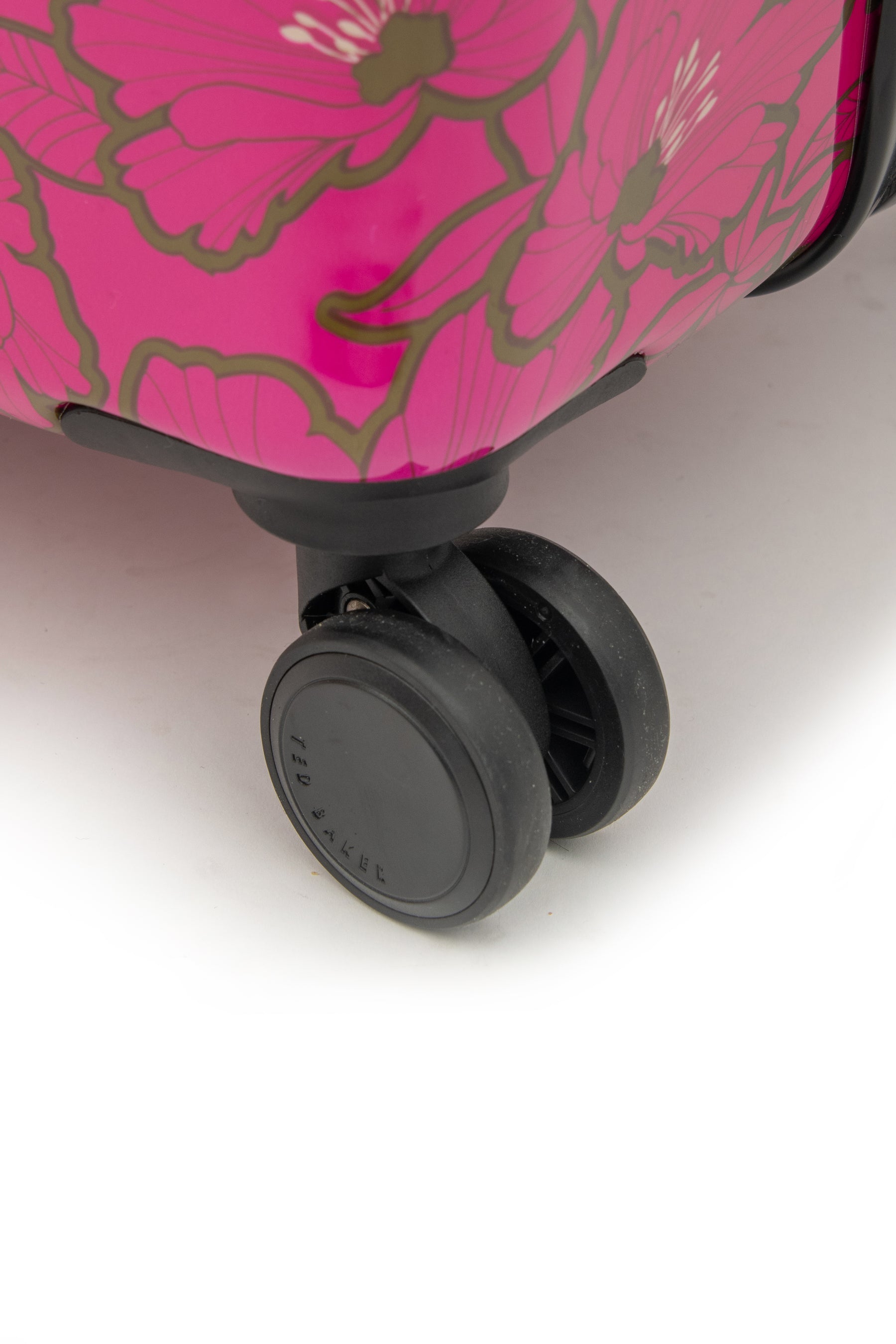 Details include a signature Ted Baker lining with organised interior to make packing easy, an embedded TSA lock and double wheels with branded wheel caps.