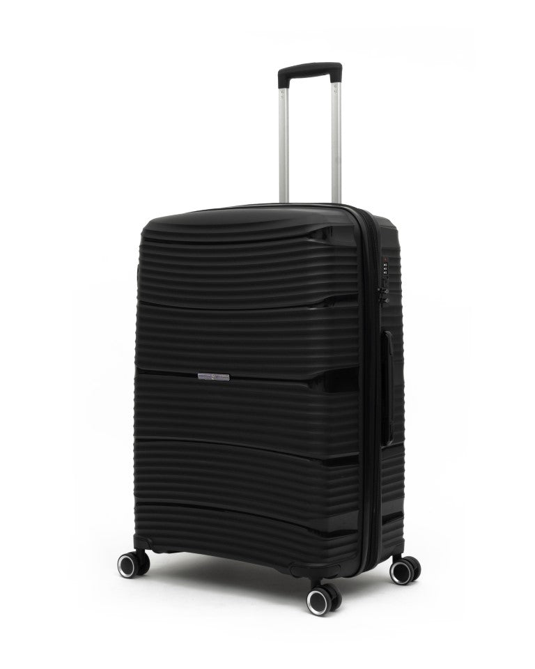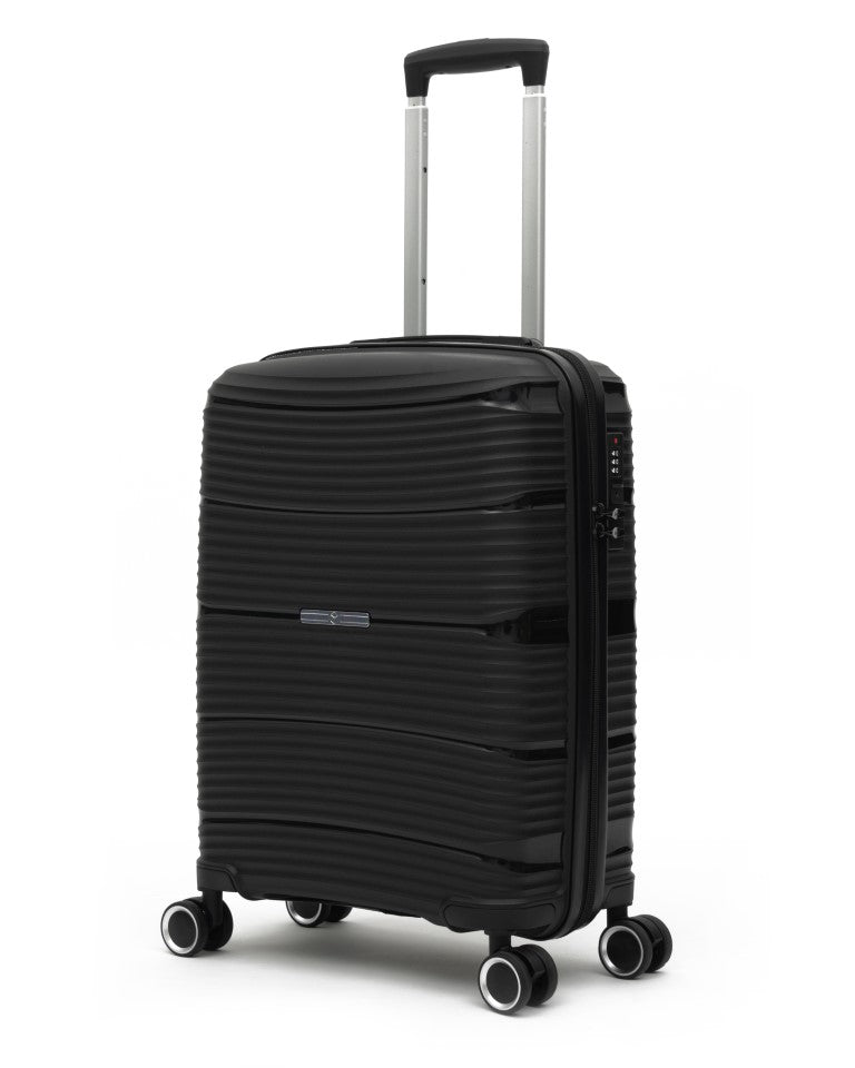 Data is a contemporary designed hardside luggage collection by Qubed. Data has a textured finish with smooth horizontal lines. It is made from hard shell polypropylene for a robust exterior. This 3 piece set includes a Cabin, Medium and Large Suitcase. The Medium and Large are expandable.