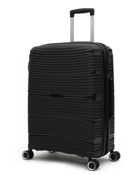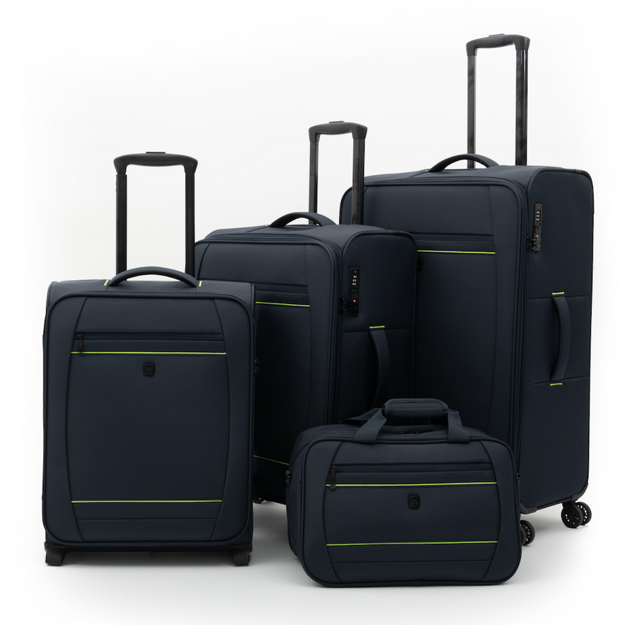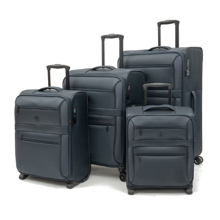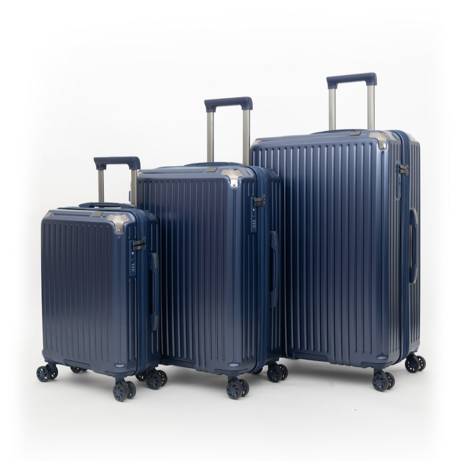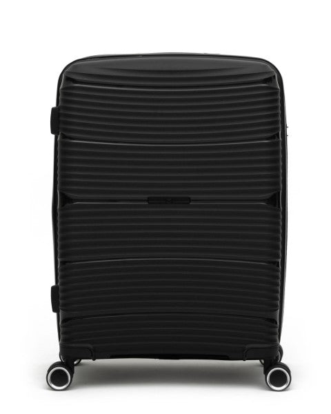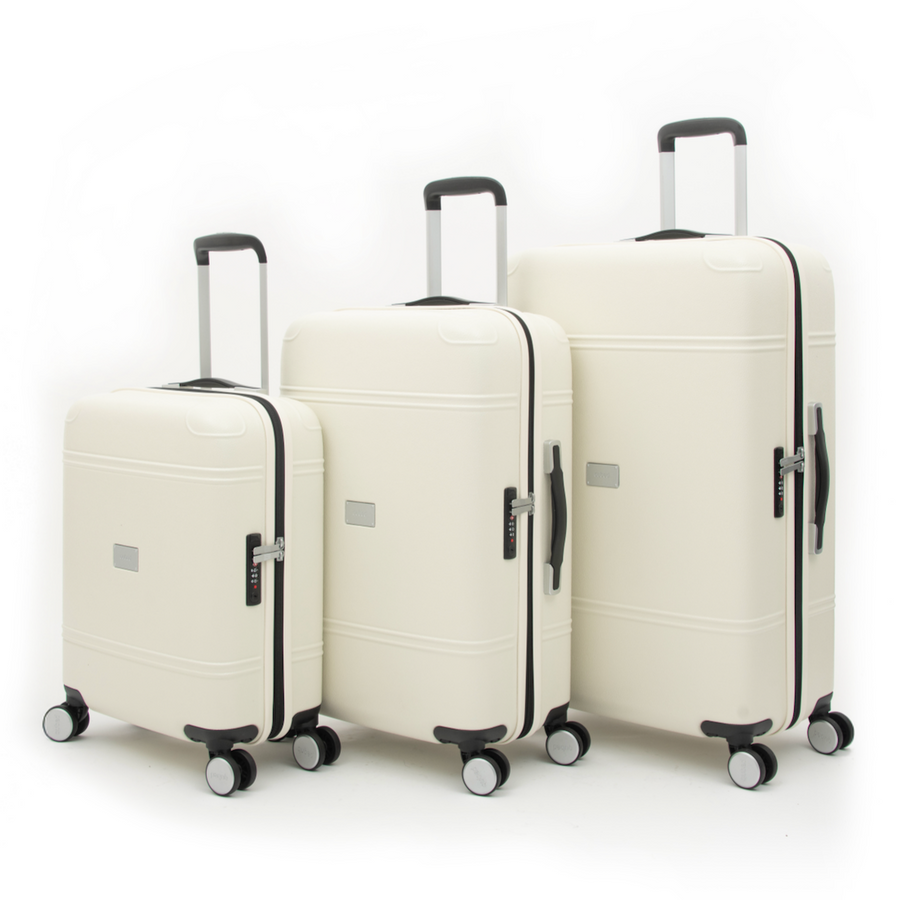 Nimbus is a contemporary style luggage range by Qubed. Inspired by minimal clean design aesthetics, Nimbus has a smooth finish with subtle horizontal lines and embedded branding. This 3 piece collection includes a Cabin, Medium and Large Suitcase all with integrated TSA combination locks and matching colour wheel caps and corner caps.